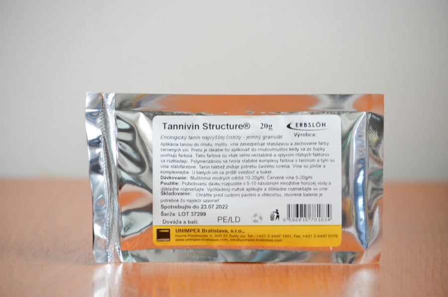 - V rmute/mušte Tannivin® Structure obmedzuje oxidáciu voľných antokyanínov a podporuje udržiavanie hroznových trieslovín počas zrenia vín.